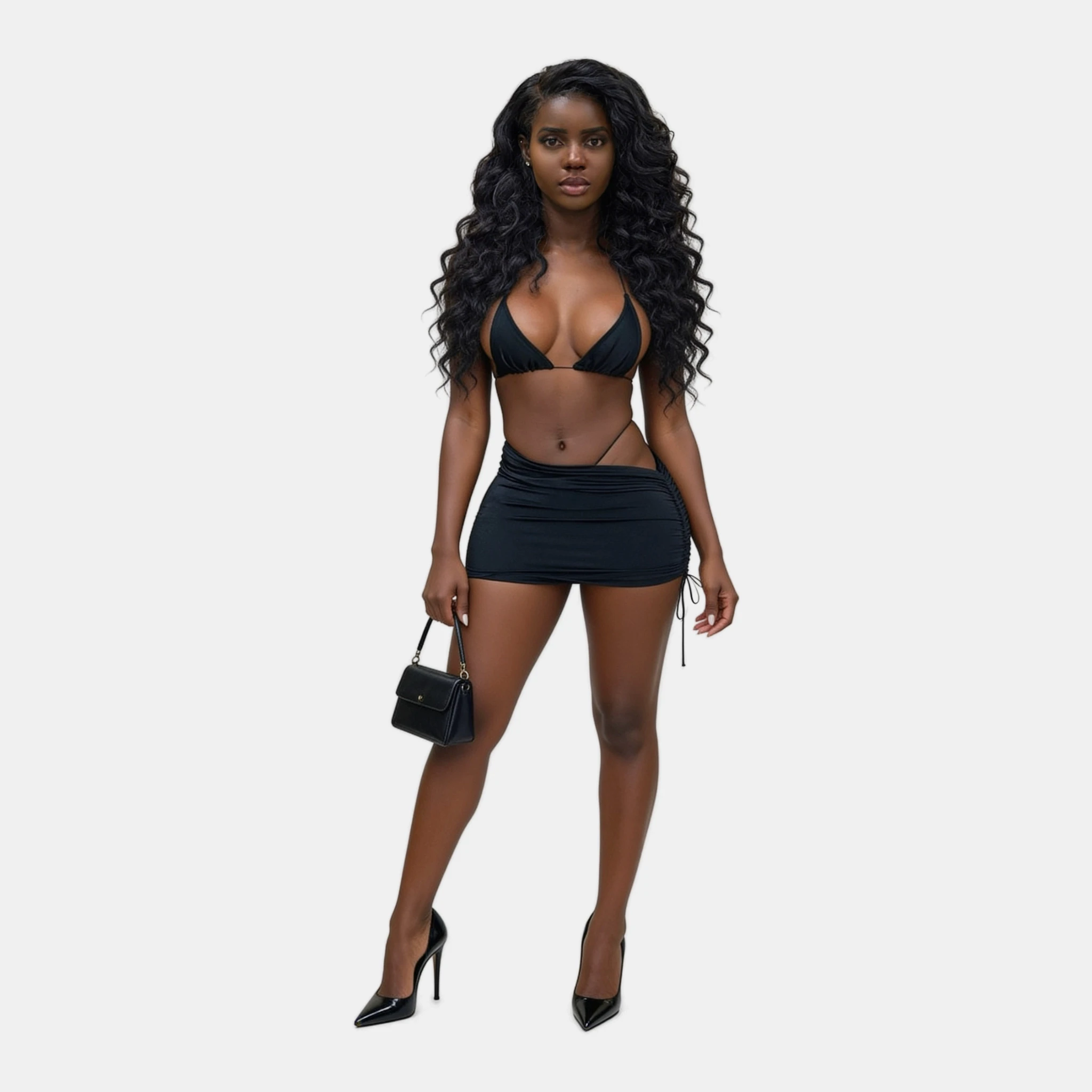 Chris returned the wave and looked Doctor Sapphire up and down. She wore a dirty, short black skirt that hardly covered her upper thigh. A tiny bikini top barely contained her nipples and left the majority of her upper body exposed. A visible thong poked from her disheveled skirt, she held a tiny black purse, and she stood on tall stripper heels. It looked like she had just returned from a rough night out!