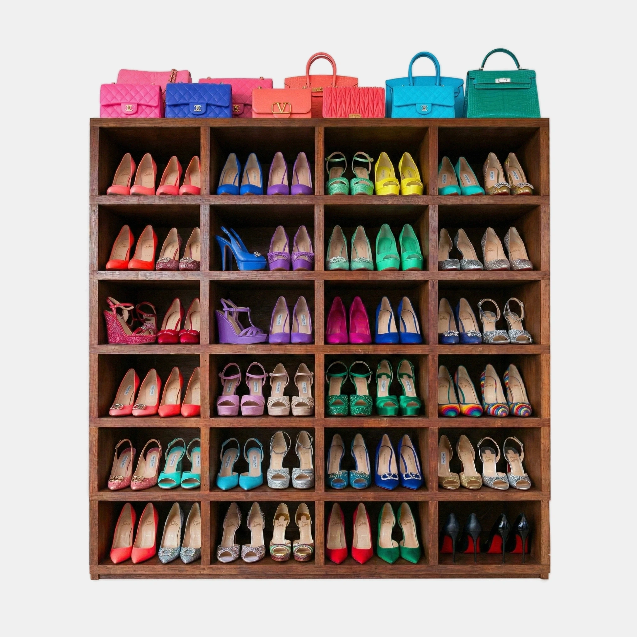 Chris poked his head inside, and his jaw nearly hit the floor. The entire wall was filled with high-heeled shoes neatly arranged on stacking shelves! Where his expensive dress shoes had once gleamed, now there was only the shine of leather and plastic heels. Rows of collectible sneakers were replaced with strappy, heeled sandals and boots. They came in all colors but appeared to be the same size as the heels he was currently wearing, which were very small. On the top shelf was an assortment of designer purses, which were also in a variety of colors. Strangely, Chris knew each and every brand of purse and shoe in the closet and could accurately ballpark their prices. There were tens of thousands of dollars worth of items in here!
