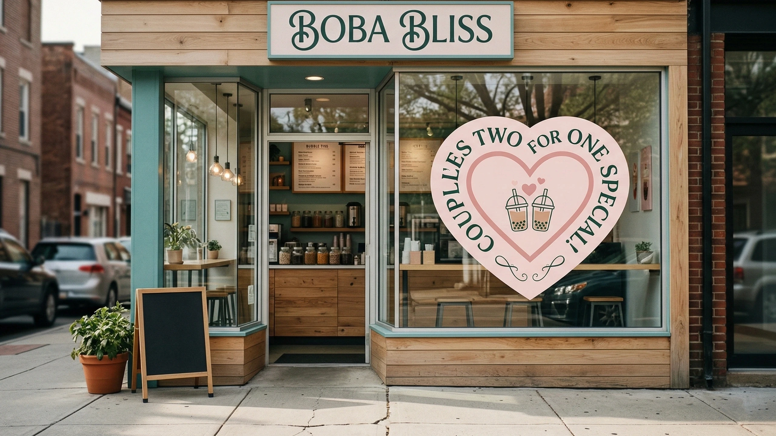 There was a big sign in the window that read ‘COUPLES TWO FOR ONE SPECIAL!’ surrounded by a heart.