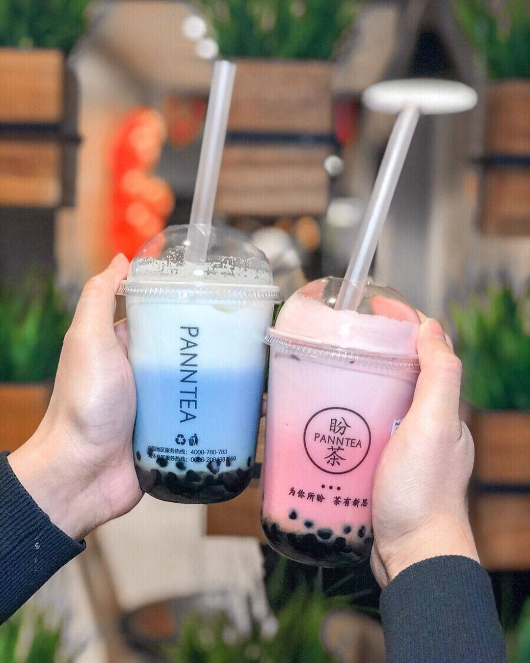 Brad happily drank his blue tea while commenting, “You know, I’m not really a ‘tea’ guy, but this bubble stuff isn’t half bad. You like yours?”