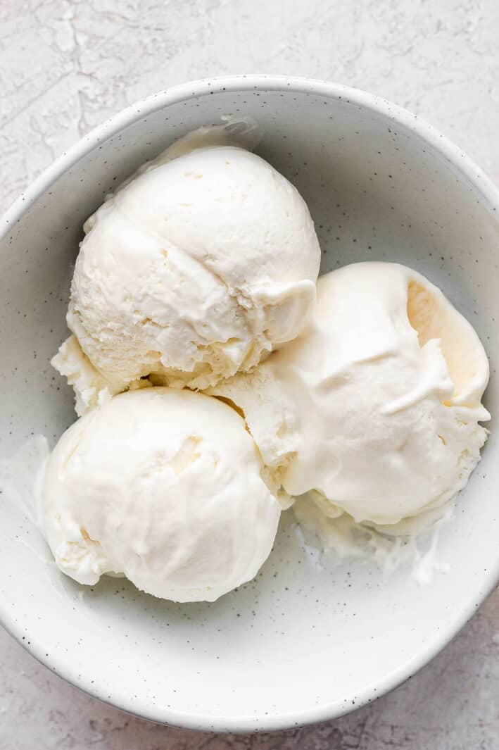The third bowl was filled with white-colored ice cream.