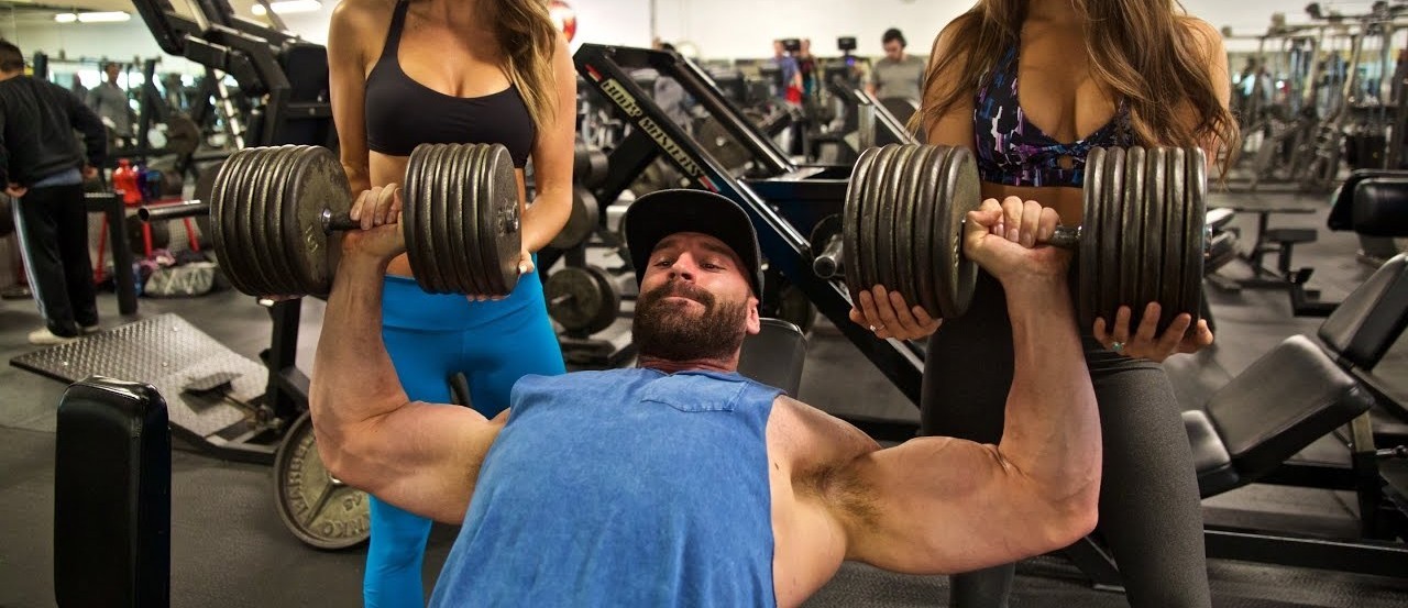 She turned her eyes to Brad, who was lifting some huge dumbbells! Chrissy had almost forgotten how strong and muscular her boyfriend was. His rippling muscles pulsated with strain as he pushed the heavy weights. He was lying on a bench, flanked by two gym bunnies who caressed his gigantic dumbbells sensually.