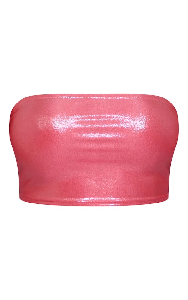 While Chrissy was busy examining her new nails, Sapphire reached forward and gently removed Chrissy’s top, being sure to avoid disturbing the towel. Her heavy breasts flopped out, but Sapphire ignored them. She threw the top into her bag and collected a tiny strip of shiny pink fabric, which she carefully slipped down Chrissy’s torso. She tugged the much tinier, skimpier boob tube over Chrissy’s chest. It was made of shiny latex and did almost nothing to cover any part of her body. Her tits spilled out over the top, and Chrissy struggled with her new nails to corral them back inside. Even freshly stuffed back into the top, Chrissy knew they were one tiny move from bursting up and out. Her nipples were juuuuuust barely covered, and her cleavage was puffy and deep.