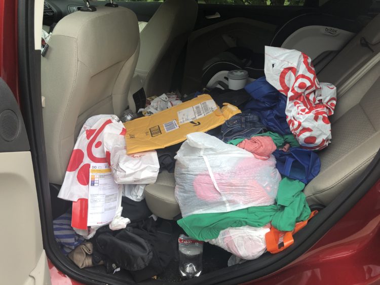 Candy hurriedly followed her mother’s order and pulled on the door to the back seat. A mountain of trash and dirty clothing layered everything. The whole car smelled like a stale dumpster.