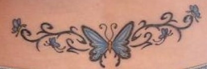 The ink was centered in the middle of her hourglass figure. It sat just above her flared hips and demanded attention with an eye-catching blue. It was trashy, girly, and slutty all at the same time. Kourtnee didn’t know a single man that had a tattoo like this!