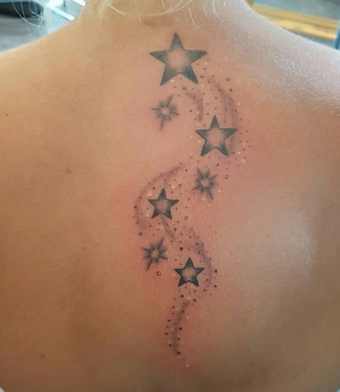 And, finally, a series of stars traced from her neck down her back.
