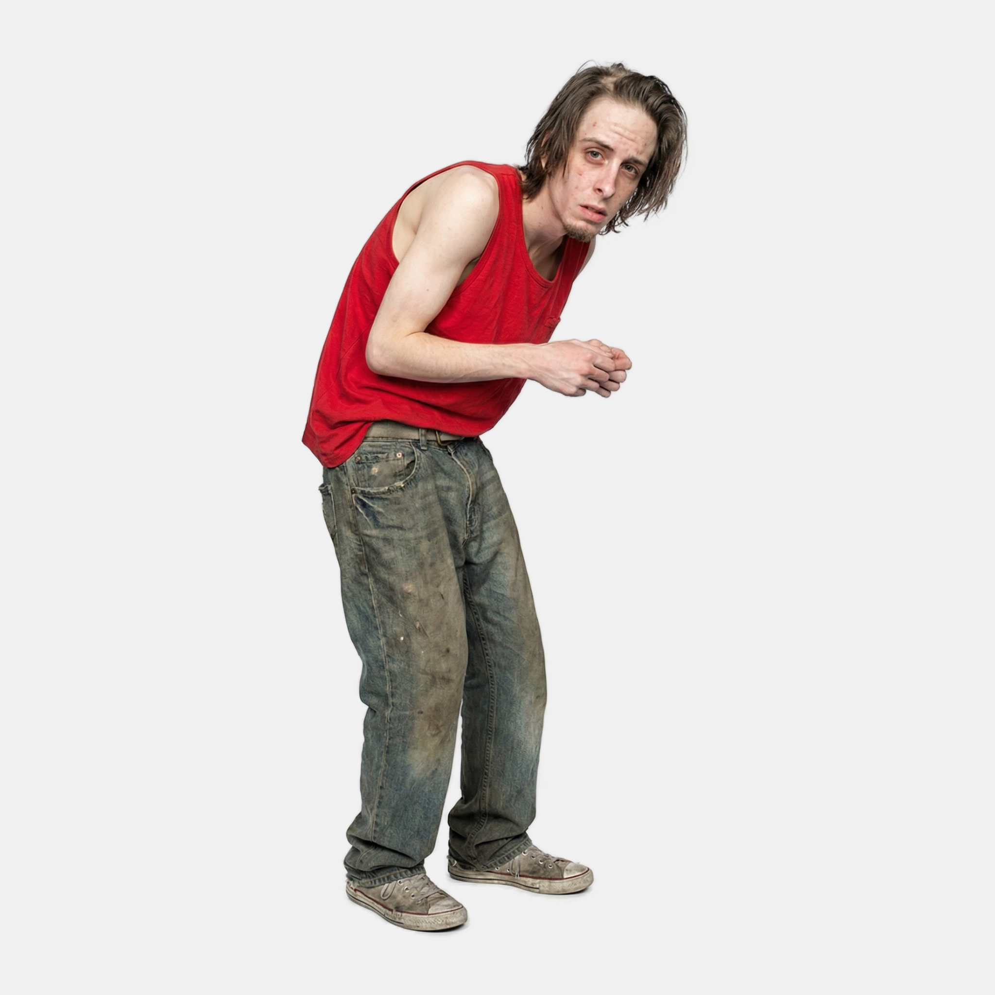 Cammi didn’t feel anything unusual as the drops settled in her stomach. She didn’t have time to properly react to swallowing an unknown substance before a new presence entered the lights. Silas lumbered over with a hunched back. His sickly pale visage was pockmarked with scars and open, weeping sores. He twitched around nervously. His mop of disheveled, greasy hair formed in clumps around his blatantly apparent bald spot. Despite being only in his late twenties, Silas looked like a man of forty. He wore a ratty pair of ill-fitting jeans around his skeletal hips and a red sleeveless tank top with a Confederate flag that hung off his rail-thin arms and sagging shoulders. Everything he wore looked at least two sizes too large, as if he’d lost weight at a rapid pace.
